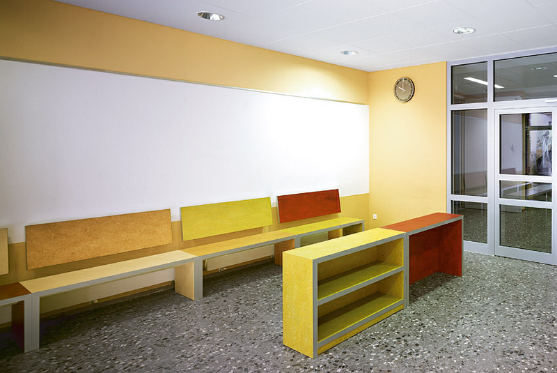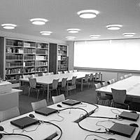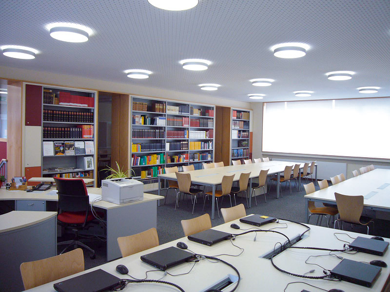 - Umbau von ehemaligen Klassenräumen in Bibliothek und Lernzentrum mit Schüler- und Lehrerarbeitsplätzen.