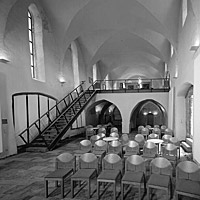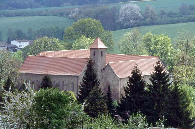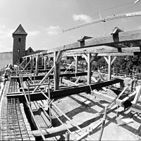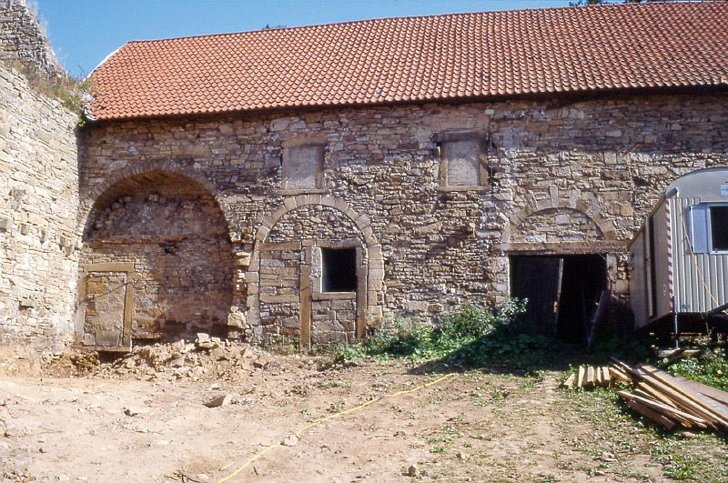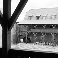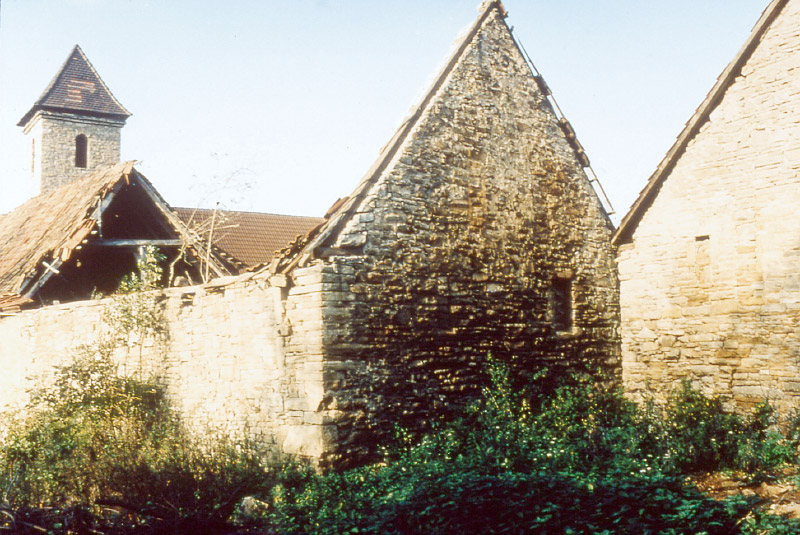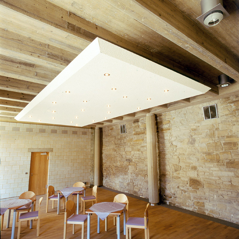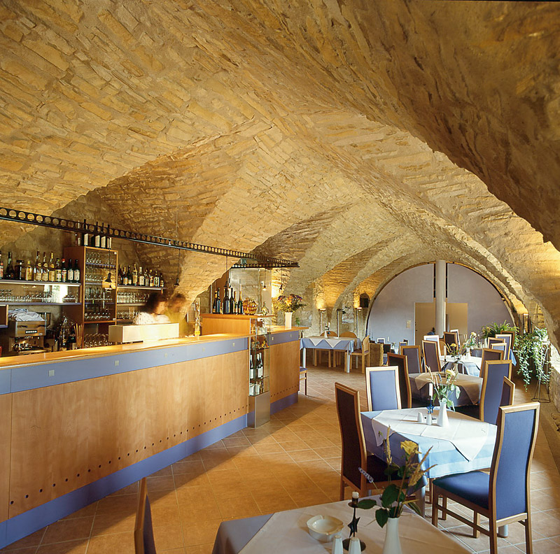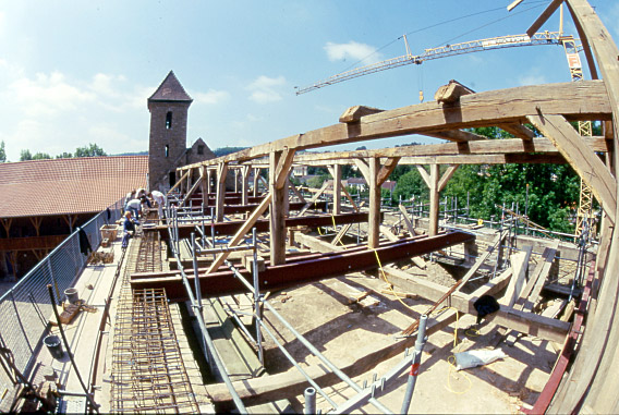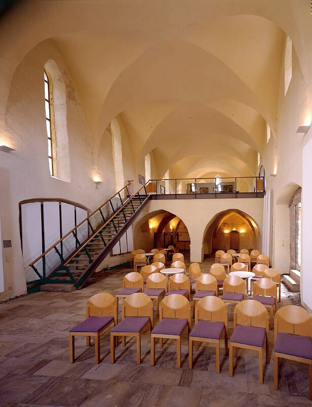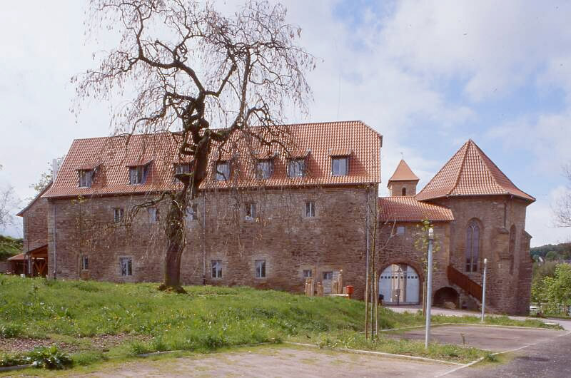 Wiederaufbau und Teilrekonstruktion der verschiedenartigen historischen Bausubstanz mit Ergänzungen für das heutige Raumprogramm: Bürger- und Kulturzentrum mit Seminar- und Veranstaltungssälen, Museum für paläontologische Funde aus dem benachbarten Sandsteinbruch und Heimatmuseum, Restaurant mit Hotelbetrieb.