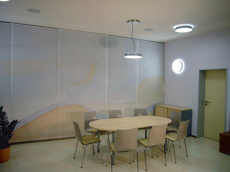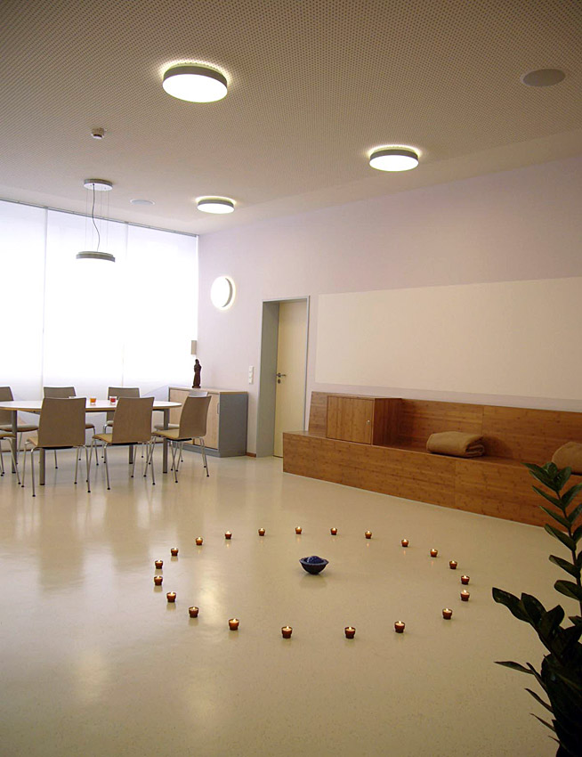 Für die Schüler sollte ein offener Schulpastoralbereich mit multifunktional nutzbarem Religionsraum, einem Einzelbesprechungsraum für die Schulseelsorge und einem Entspannungs-, Meditations- und Gottesdienstraum geschaffen werden - eine anspruchsvolle Umgestaltung von Standard-Klassenräumen in diesen besonderen Bereich.